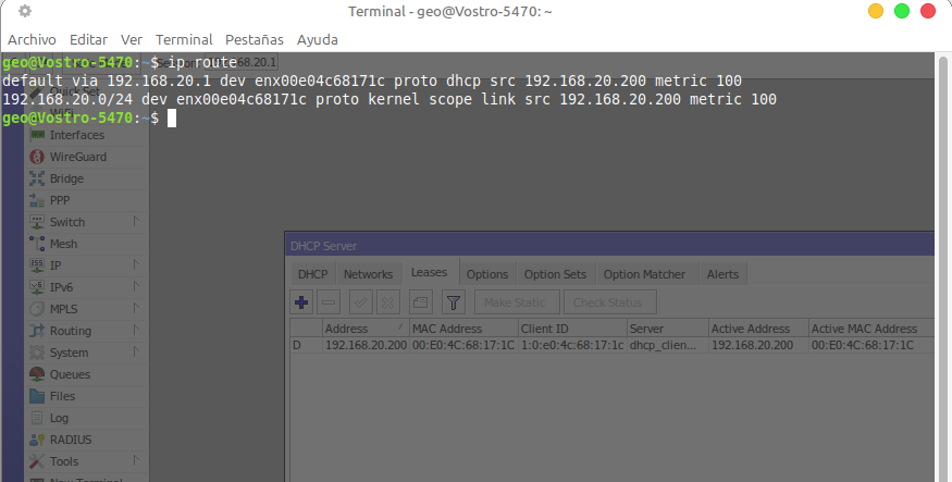 Ok ahora si conectamos una computadora al puerto ether2 ya deberia asignarnos una ip en el rango 192.168.20.x y con salida a internet.