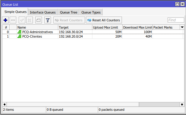 add max-limit=20M/40M name=PCQ-Clientes queue=\