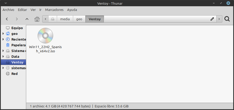 ya que termine el proceso ya puedes grabar tus isos a la particion ventoy.